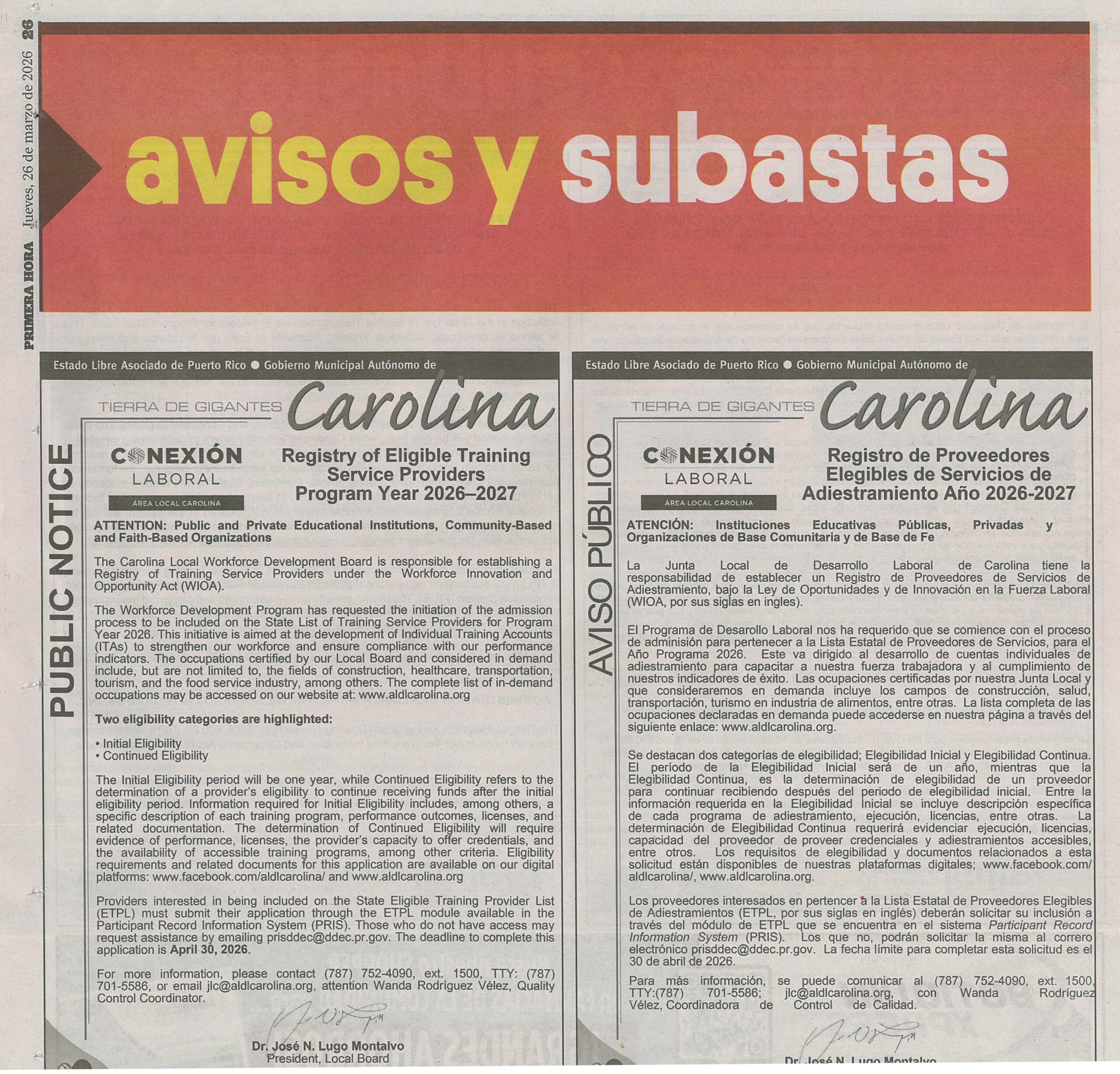 PRIMERA HORA, PÁGINA 26, Jueves, 26 de marzo de 2026